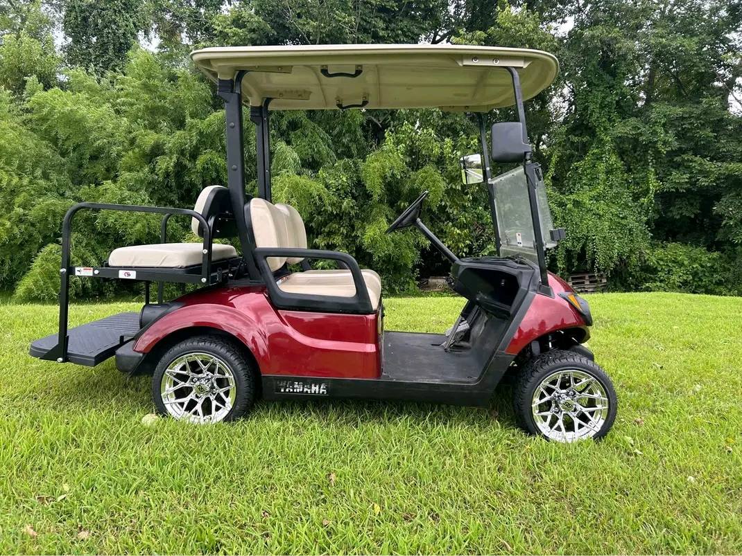 COMPLETELY REFURBISHED! This stunning 2017 Yamaha Drive2 G29 48V golf cart for sale has been fully restored with brand new deep red paint, 12″ Rhox wheels, new lights, and premium upgrades. Turn-key ready!