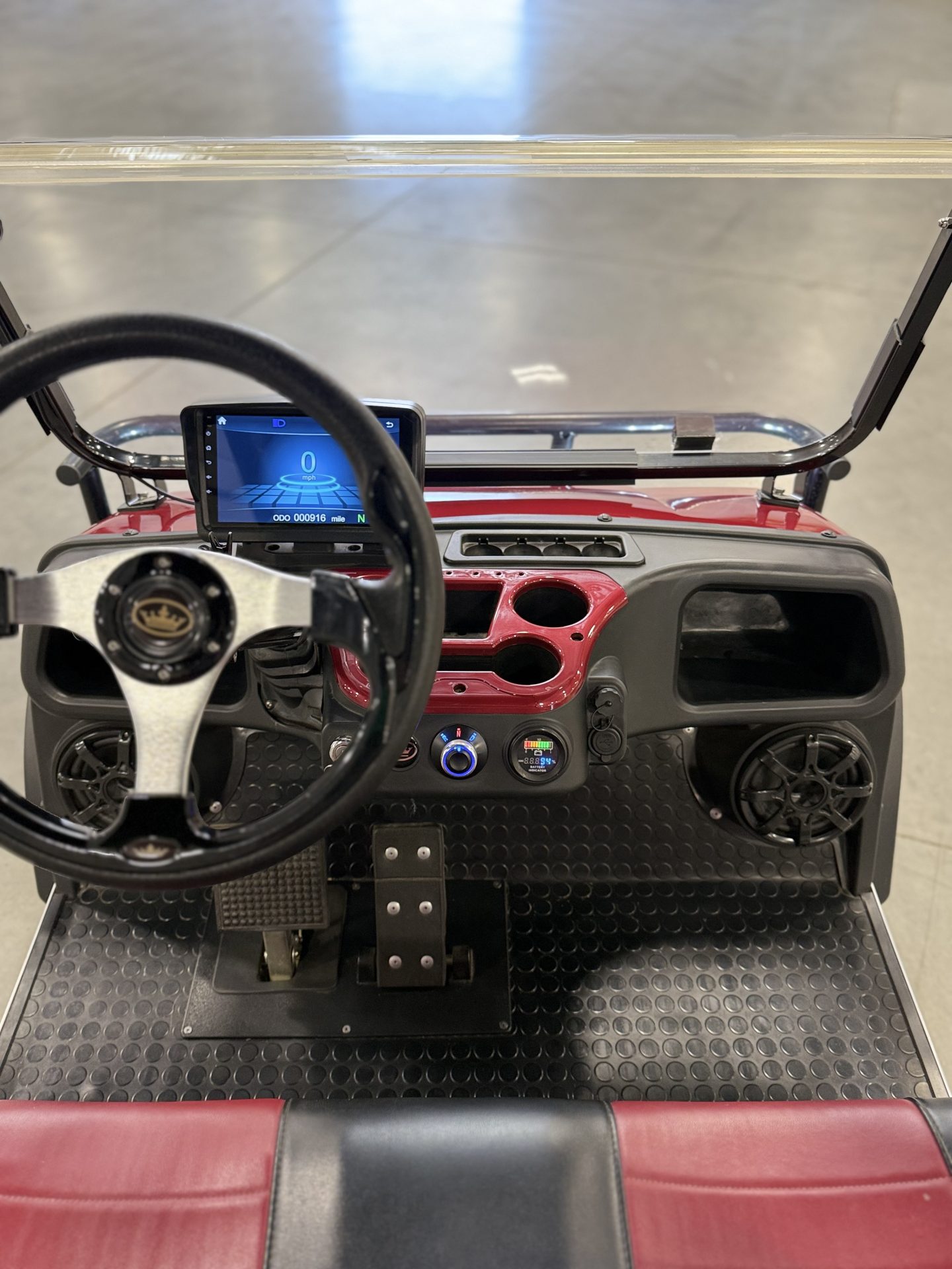 Entertainment Tech: Unlike older Club Cars or EZGOs, this 2021 unit includes a 9-inch touchscreen with a built-in Speedometer, FM Radio, Bluetooth, and a high-definition Backup Camera.