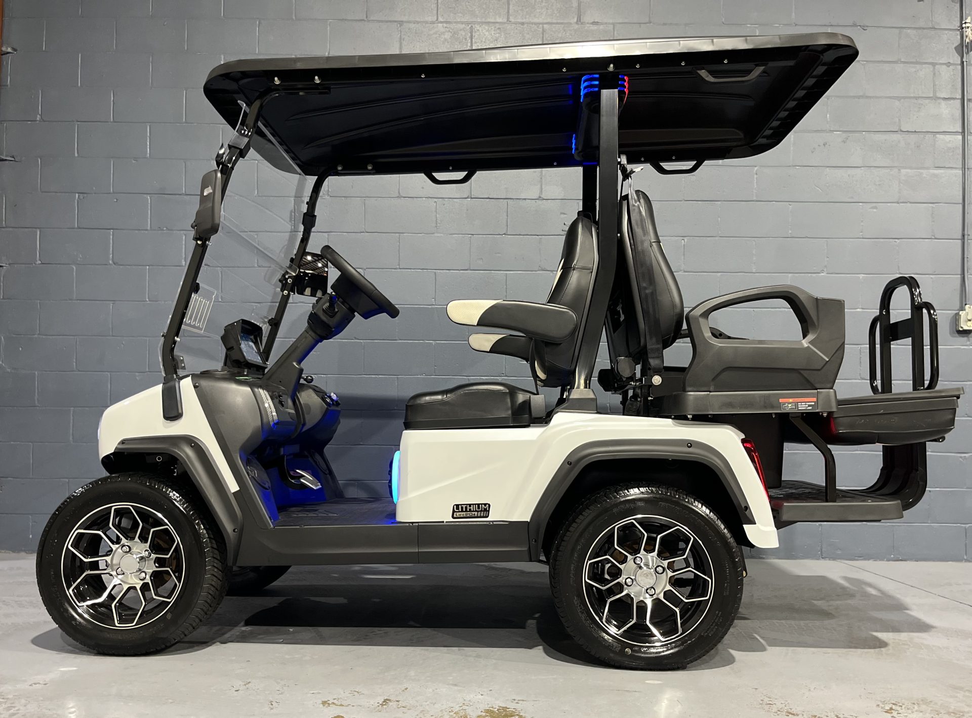 Golf Cart Holdings, this unit is the forward-facing 4-seater, which provides a more automotive, social experience where all passengers face the direction of travel.