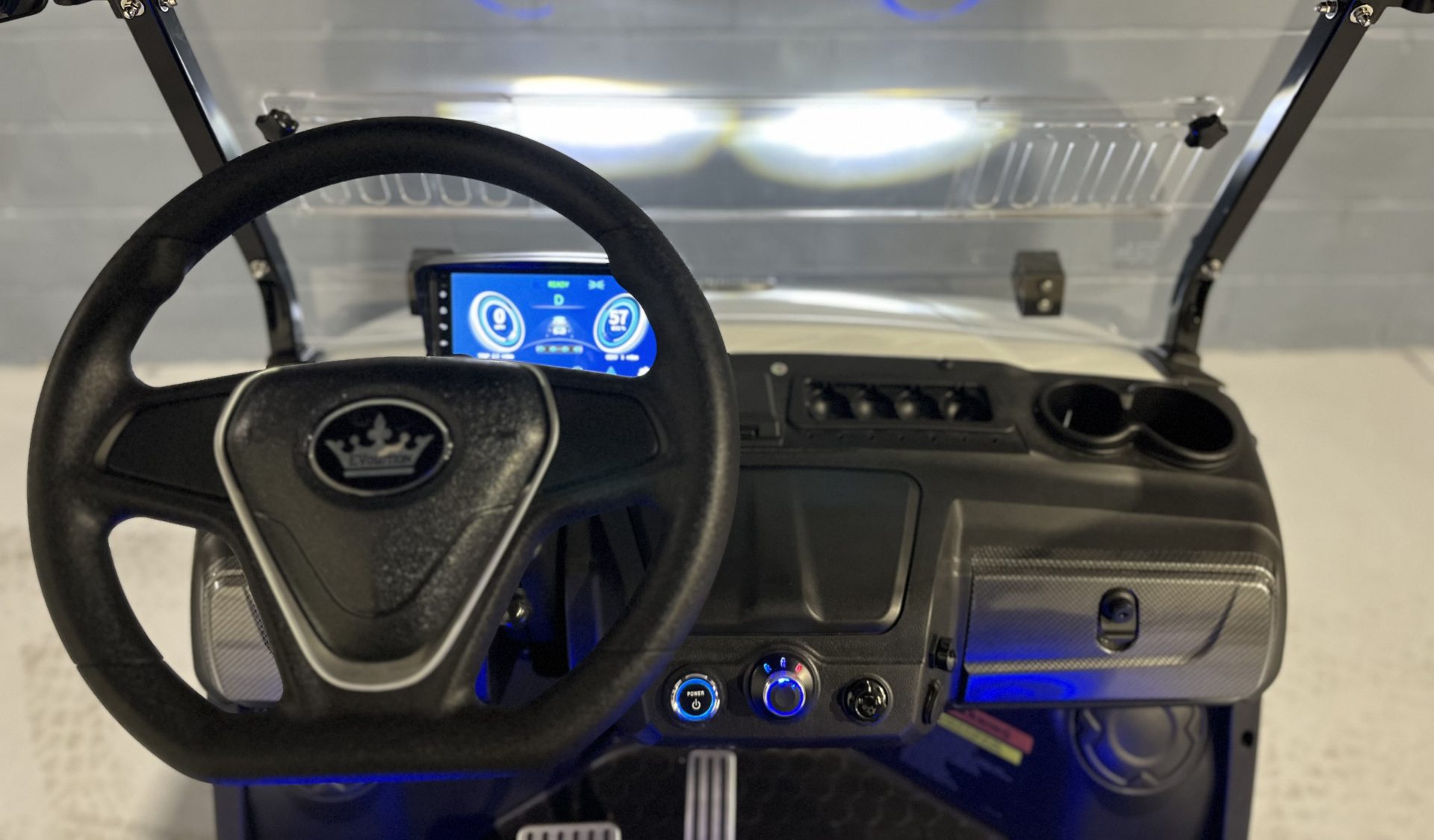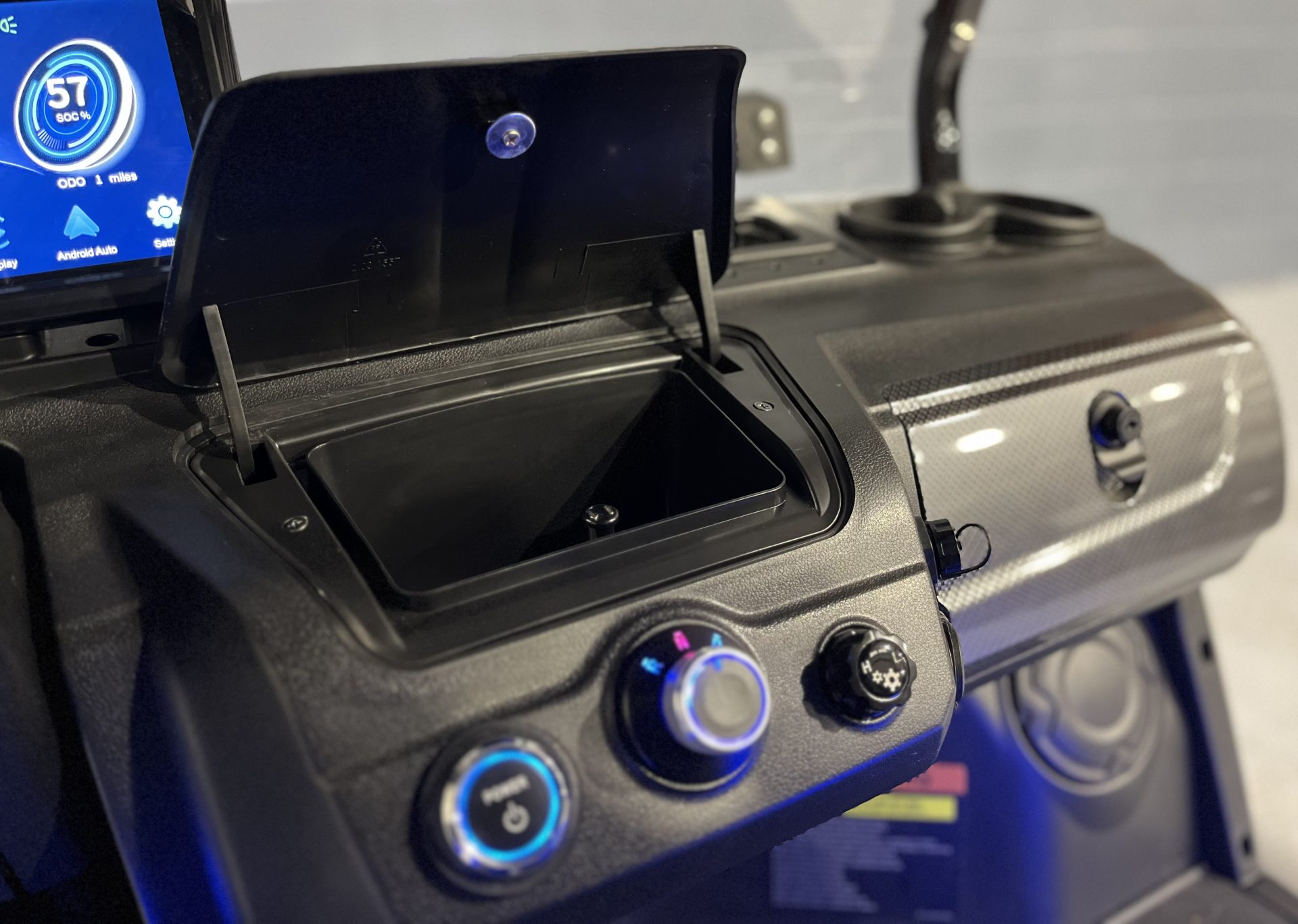 Convenience: Automotive-style features such as Push Button Start, an adjustable steering column, and a specialized Ice Chest/Cooler storage compartment.
