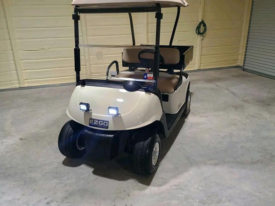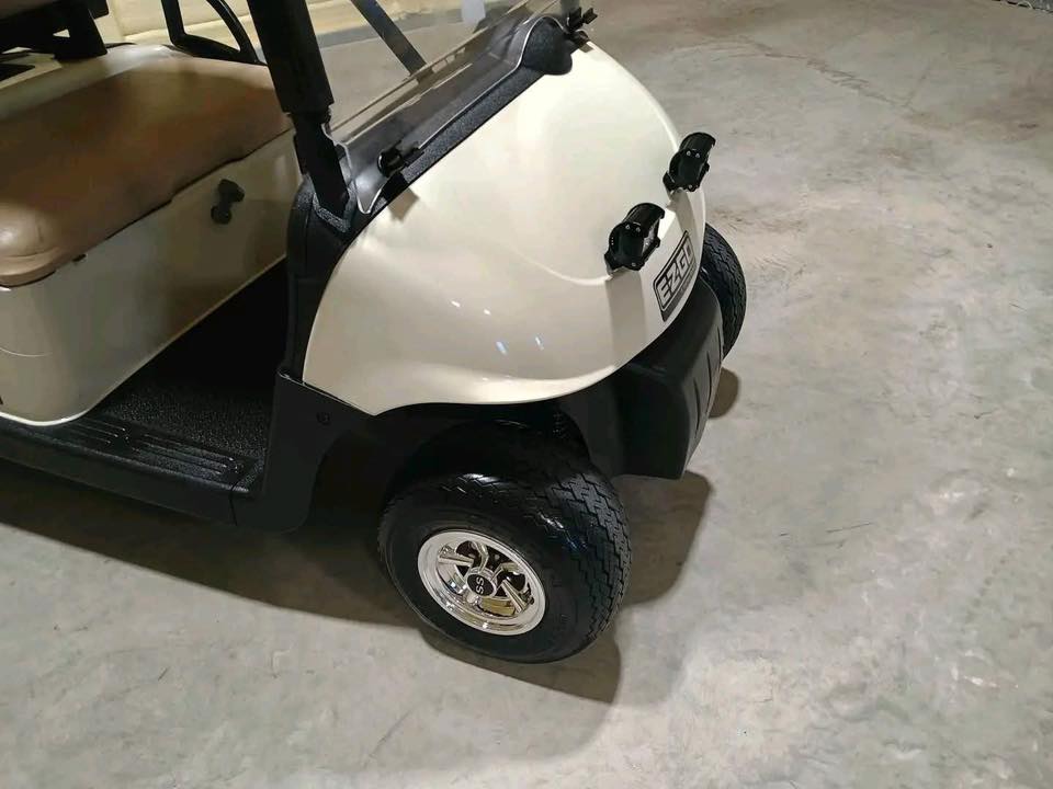 SUPER CLEAN & DEALER SERVICED! This reliable gas golf cart with Kawasaki motor for sale has been professionally serviced and features new tires, rear bed, and windshield.